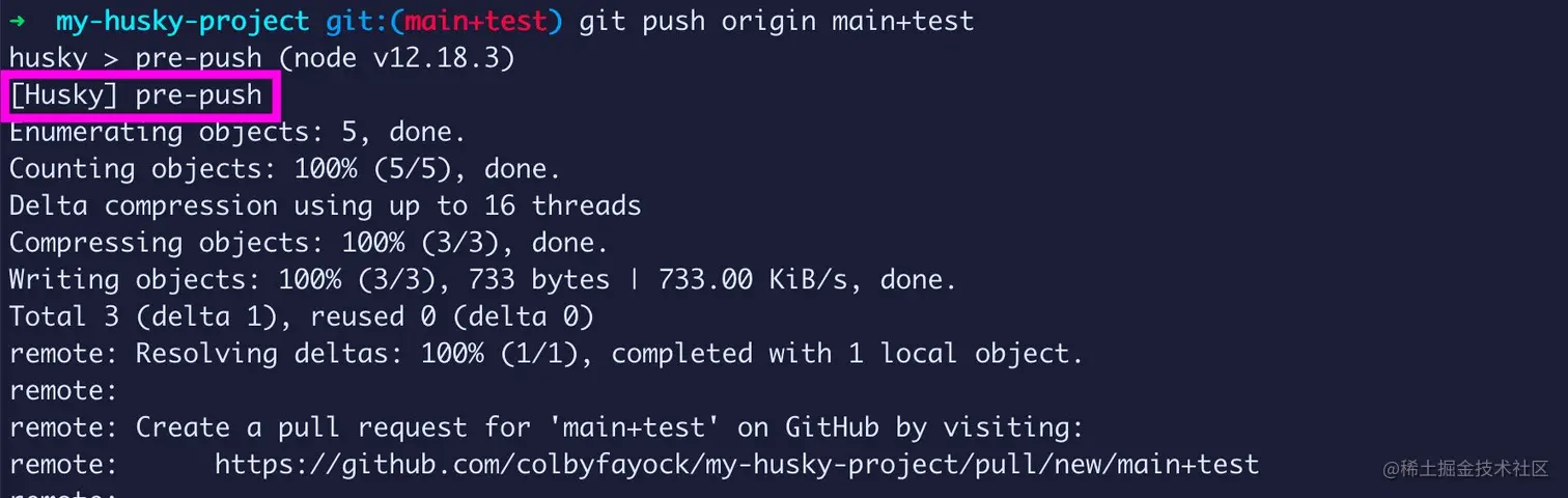 同样,如果我将这些更改推送到 Github,也可以看到推送过程运行了pre-push钩子!