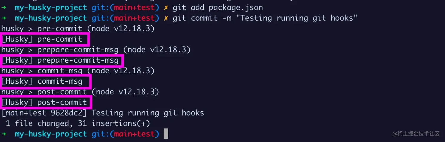 - 当 Husky 运行时,它仅运行提供的脚本。