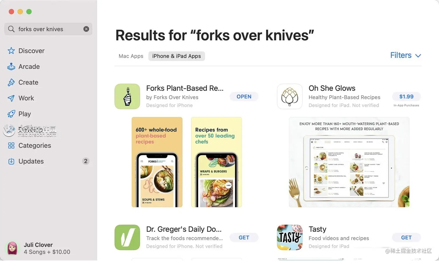 您还可以在“ Mac App Store”中搜索“ iPhone”和“ iPad”应用程序名称,然后在结果列表下方单击“ iPhone和iPad应用程序”选项卡,以查看最初为iOS设备设计的应用程序。