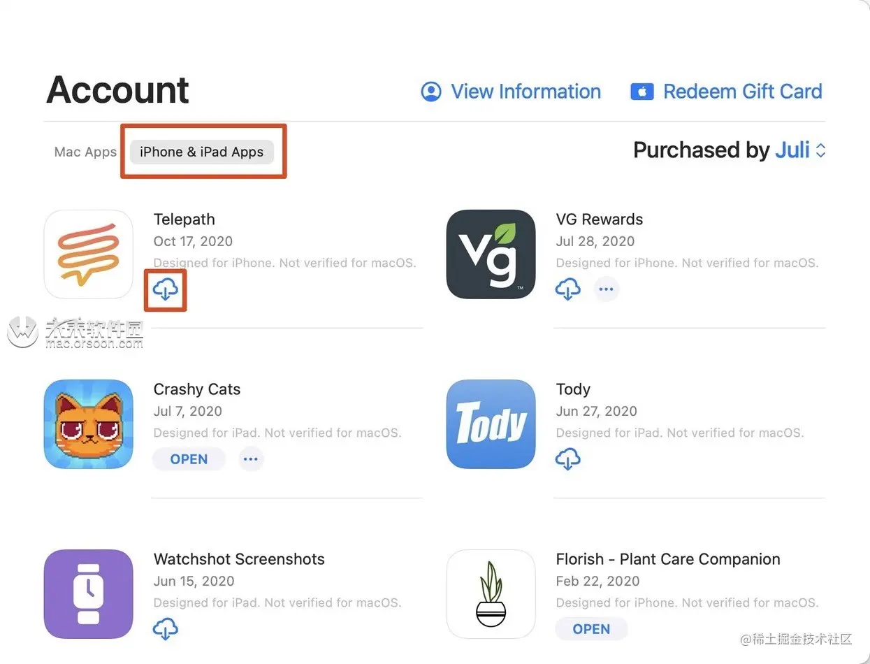 在Mac App Store中,您可以下载以前在iPhone或iPad上购买的许多应用程序。