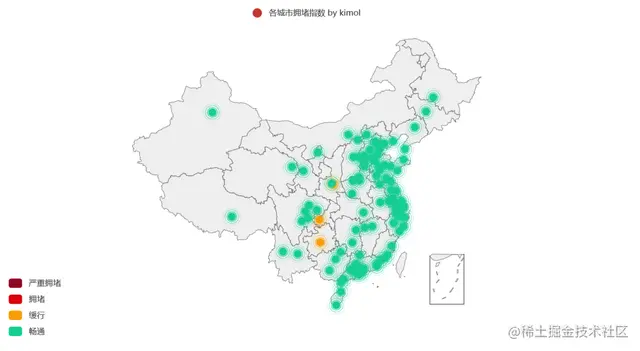 {'min':2.0,'max':2.5,'label':'严重拥堵','color':'#8F0921'}])) # 设置图例显示
