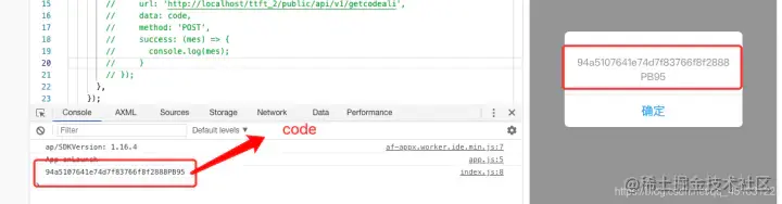 但是这里面又发现了一个坑,不能使用http的请求,因此我们需要在服务器上部署才行,这个口面再发一篇,这里先拿到code再说,注释一下代码,换成这样的