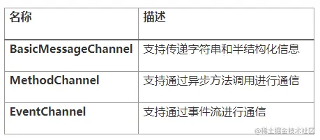 Flutter module和原生模块之间通过Platform Channel进行通信。Flutter定义了三种不同类型的Channel, 分别如下: