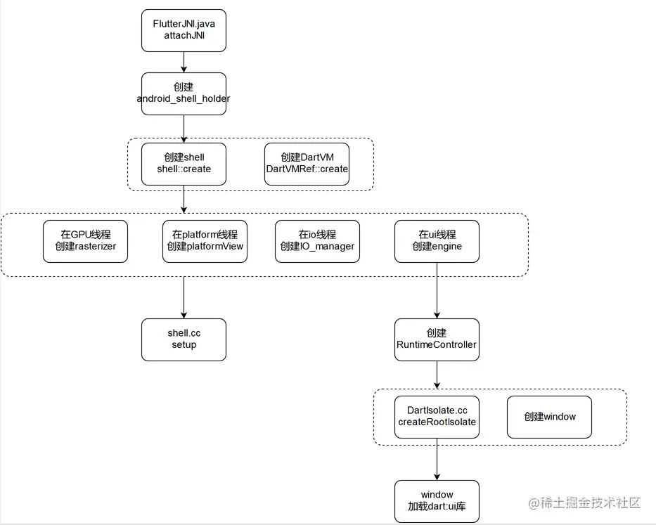 主要关注的几个对象:engine、shell、DartVM、isolate、window。
