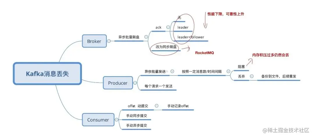 也就是说,理论上,要完全让kafka保证单个broker不丢失消息是做不到的,只能通过调整刷盘机制的参数缓解该情况。比如,减少刷盘间隔,减少刷盘数据量大小。时间越短,性能越差,可靠性越好(尽可能可靠)。这是一个选择题。