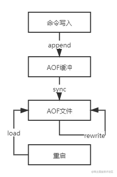 AOF以独立日志的方式记录每一次的些命令,重启时执行AOF文件,主要解决数据持久化的实时性。流程如下:
