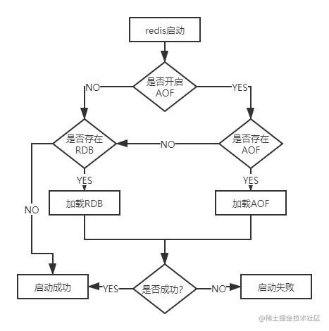AOF和RDB都可以用于服务器重启时的数据恢复。其持久化文件加载流程如下:
