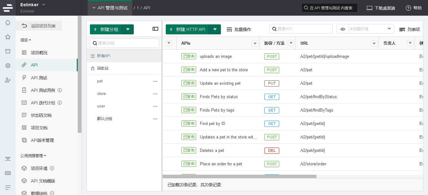 如何判断API管理工具的好坏,要从多个方面了解。首先,该工具应该提供易读且全面的API文档,强大的测试功能,容易上手,可分配不同的身份权限…… 下面列举了几个能提供强大管理服务的API管理工具(本文使用eolinker演示): Swagger:具有基于云的API管理和分析功能,并提供了开发人员和合作伙伴门户。 Postman:提供旨在提供简单API设计以及高级集成和测试功能的开源解决方案。 Eolinker:提供了API测试、API监控、API网关,是一个创建,集成和管理API的工具。 YAPI:是一个开放源的,快速的API管理工具。
