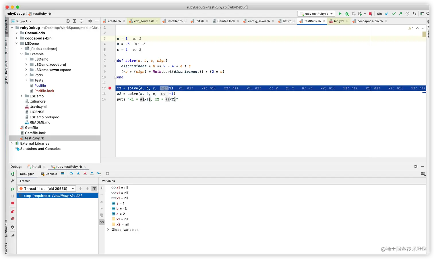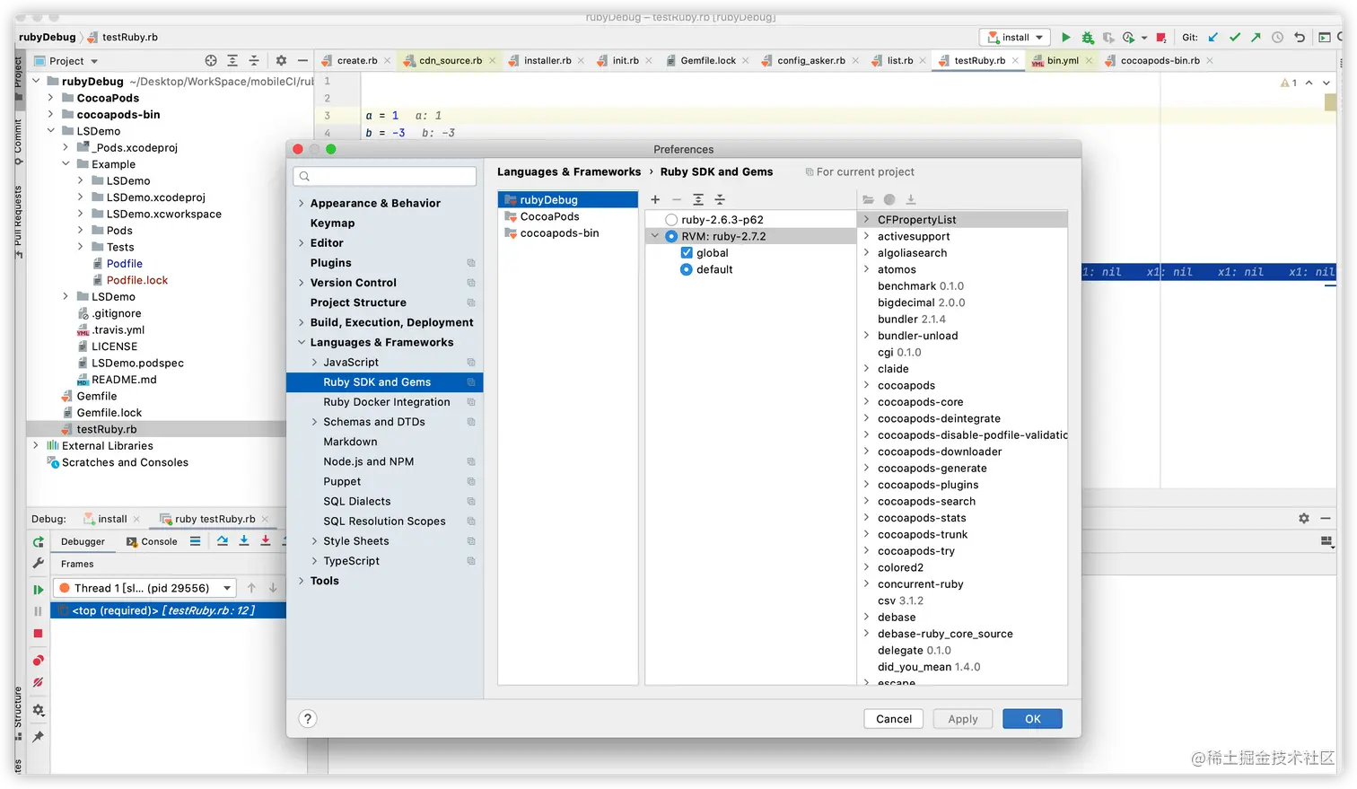 在开始调试cocoapods插件之前建议看下rubyMine能否调试正常的ruby文件: