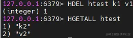 删除key中对应的field和value,用HDEL命令