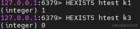 判断当前key中是否含有某个field,可以用HEXISTS,存在则返回1,不存在则返回0