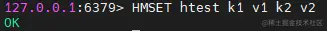 还有一个功能一样的命令,HMSET key field value [field value ...] 返回值类型为字符串类型!