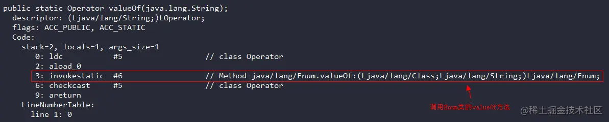 同样,valueOf方法也是一个public static方法,该方法用于获取参数String对应的枚举常量,比如Operator.valueOf("ADD");实际会返回Operator$1实例对象。