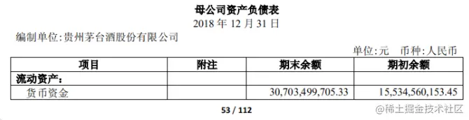 [['项目', '附注', '期末余额', '期初余额'], ['流动资产:', '', '', ''], ['货币资金', '1', '112,074,791,420.06', '87,868,869,913.34'], ['结算备付金', '', '', ''], ['拆出资金', '', '', ''], ['以公允价值计量且其变动计入当\n期损益的金融资产', '', '', ''], ['衍生金融资产', '', '', ''], ['应收票据及应收账款', '2', '563,739,710.00', '1,221,706,039.00']]