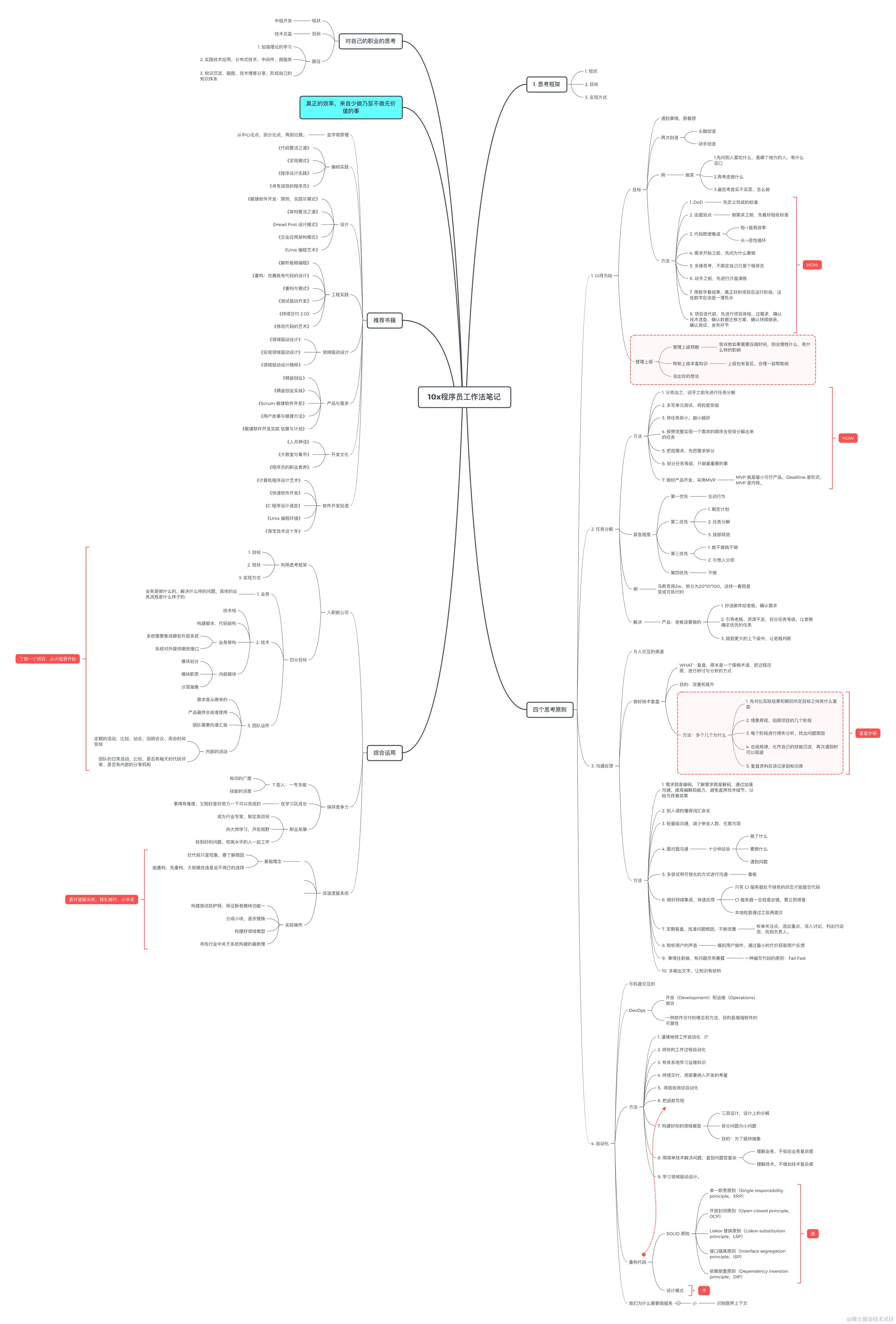 在极客时间上学习了郑晔老师的《10x程序员工作法》 课程,感觉受益匪浅,在学习过程中,将老师的知识用脑图的形式记录下来,在这里做个分享,不足之处欢迎大家指出。