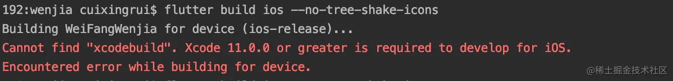 Encountered error while building for device.