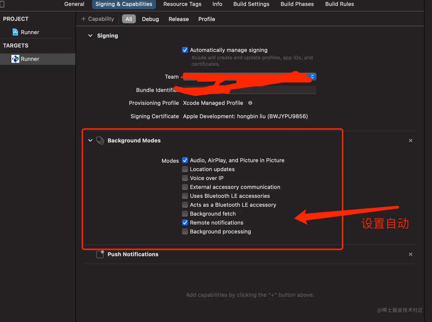 signing is disabled and unable to generate a profile. To enable automatic signing, pass -allowProvisioningUpdates to xcodebuild. (in target 'Runner' from