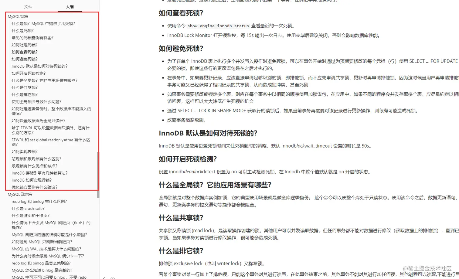 MySQL高级优化及锁问题篇目录