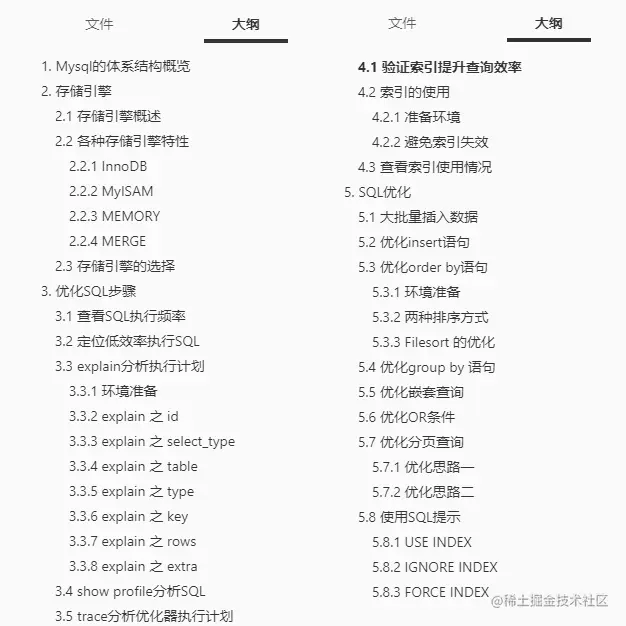 MySQL索引及优化篇目录及内容