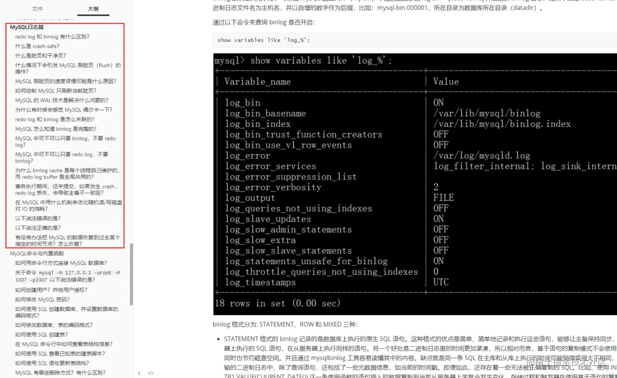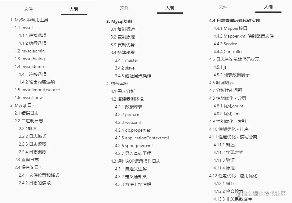 MySQL日志及架构篇目录