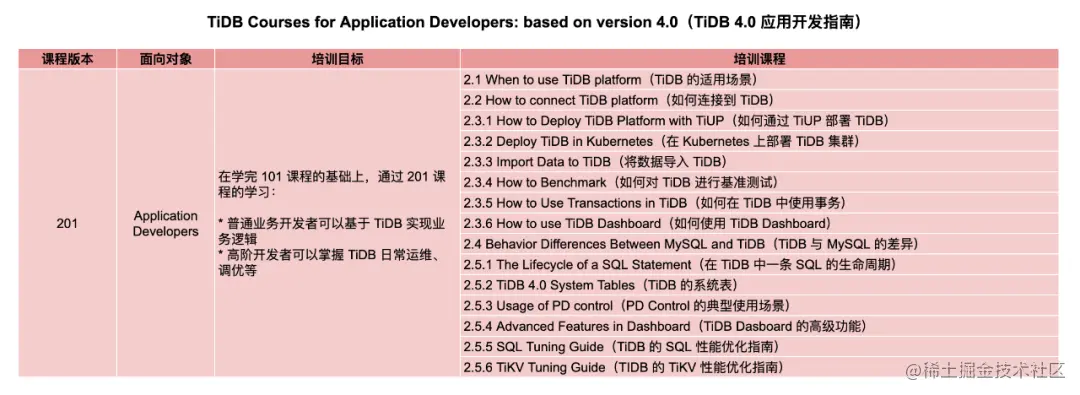 - 优化课程学习曲线:TiDB 4.0 课程共设计了 3 个课程版本,分别为: