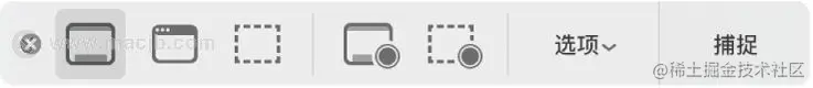 macOS 自带的截屏工具的功能性就丰富许多,如果你的系统是 macOS Mojave 10.14 或以上版本,可以按下「 Shift-Command-5」的组合键来启动截屏工具,从左到右分别是「捕捉整个屏幕」「捕捉窗口」「捕捉屏幕的一部分」「录制整个屏幕」「录制屏幕的一部分」。