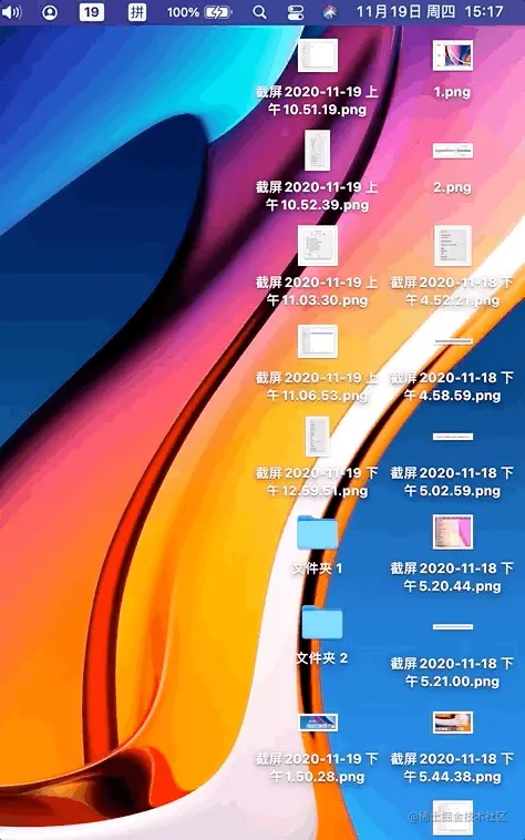 macOS 支持在桌面和程序坞使用「叠放」功能来对同个种类、同个日期或者同个标签的文件进行归类,例如,桌面上所有的文稿可以分组到一个叠放中,截屏可以分组到另一个叠放中。