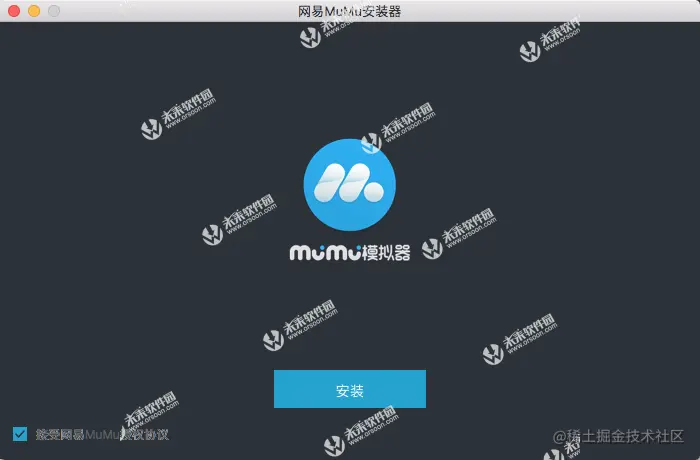 下载好网易MuMu安装包后,点击打开网易MuMu.dmg,双击【双击安装MuMu模拟器】进行安装,如下图: