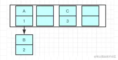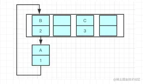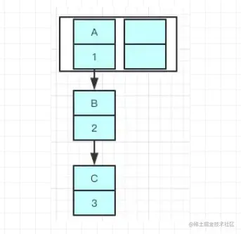 先举个例子吧,我们现在往一个容量大小为2的put两个值,负载因子是0.75,我们在put第二个的时候就会进行resize ,现在我们要在容量为2的容器里面用不同线程插入A,B,C,假如我们在resize之前打个断点,那意味着数据都插入了但是还没进行resize那扩容前可能是这样的,我们可以看到链表的指向A->B->C