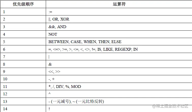 与 = 的区别在于当两个操作码均为 NULL 时,其所得值为 1 而不为 NULL,而当一个操作码为 NULL 时,其所得值为 0而不为 NULL。