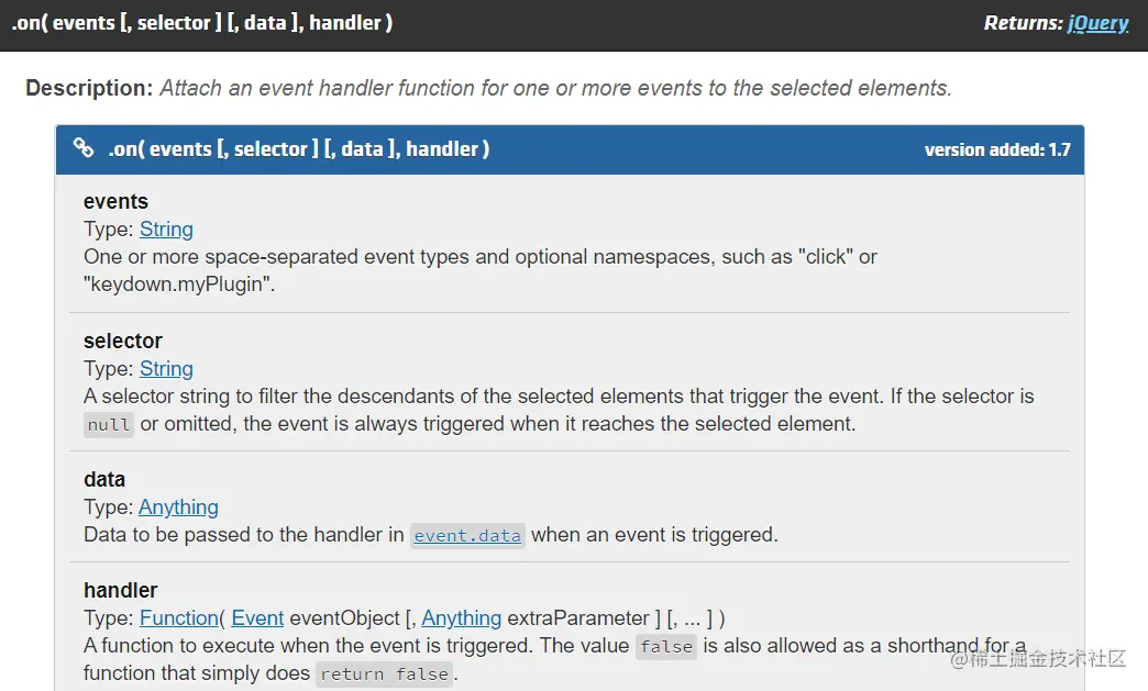 查jQuery官方文档的时候注意方法是.xxx还是jQuery.xxx,前者代表需要选择器
