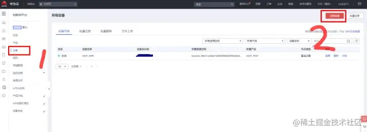 点击设备⇒注册设备