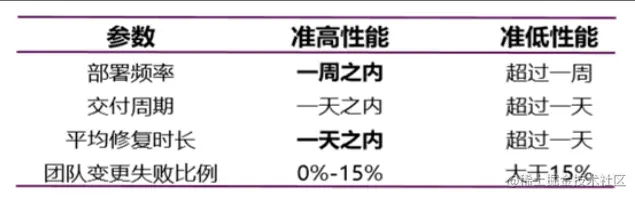 在2018年的DevOps调查报告中基于上述4个维度,由于仅有6%达到了所规定的高性能指标,为了避免特殊原因造成数据过低,所以放宽的条件,并给出了准高性能DevOps指标。