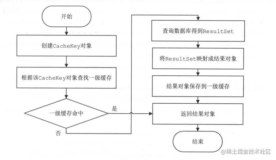 (5)如果二级缓存没有相应的结果对象,则调用底层Executor 对象的query()方法,它会先查询一级缓存,一级缓存未命中时,才会查询数据库。最后还会将得到的结果对象放入集合中保存。