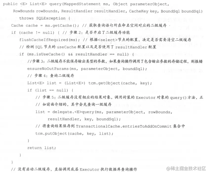 二级缓存是通过 CachingExecutor实现的,CachingExecutor.query()方法执行查询操作的步骤
