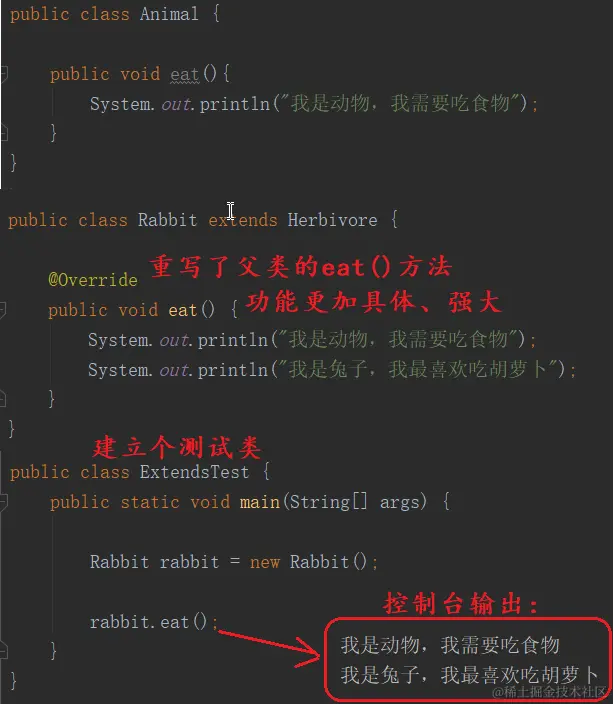 动物会移动,兔子不仅会移动还会跳,跳这个方法就是兔子这个类的拓展