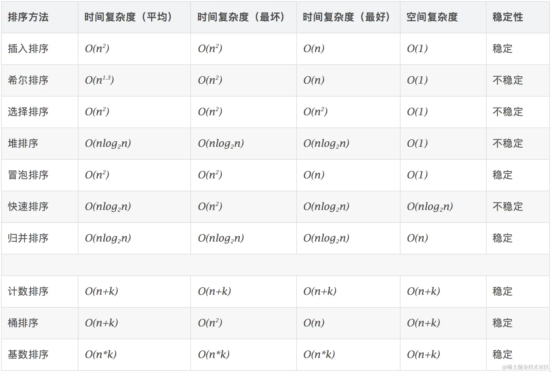其时间、空间复杂度如下图所示: