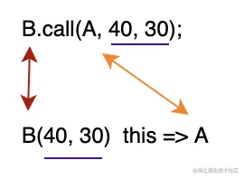 B.call(A, 40, 30)- 首先判断