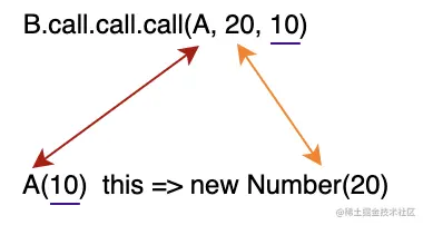 B.call.call.call(A, 20, 10)- 首先我们能够看到有三个
