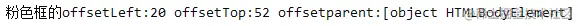 我们可以看到这里的父元素没有开启定位元素,那这里的offsetTop和offsetLeft是根据什么呢?答案是body.让我们来算下offsetLeft如果按父元素应该是0,这里是20,其实就是因为加了20的margin-left.offsetTop如果按父元素应该是21或者42,这里是52,其实就是因为最外面的父元素加了10的margin-left.就等于粉色框距离body的长度。所以总结为只要自身不为fiexd定位,offsetTop和offsetLeft就根据最近的开启定位的父元素的内边框来计算距离,如果父元素都没有开启定位,那就按照body作为标准来计算。