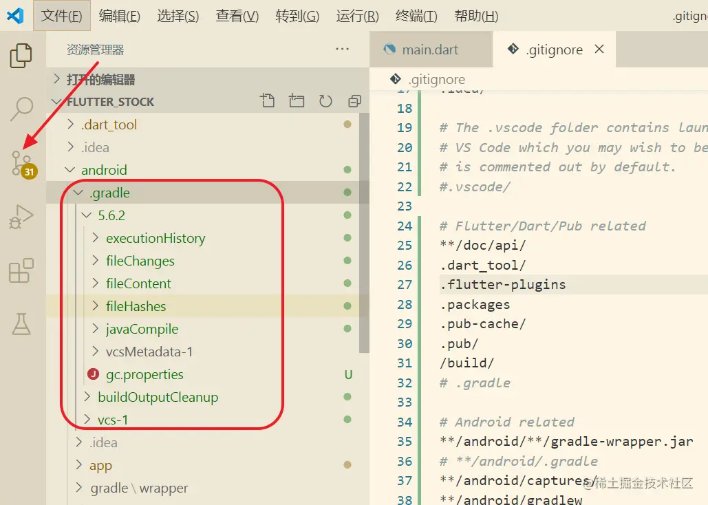 可以见到.gradle文件夹已经变成灰色的了。说明它不会被git关注其变动了