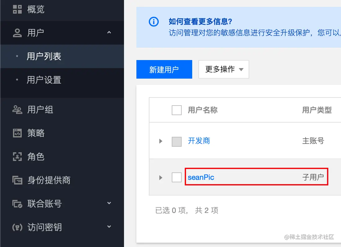 - secret id/key, 就是子用户的对应id和key, 找到点进去就可以查看了. 也可以在创建完毕子用户之后, 发送到邮箱保存.