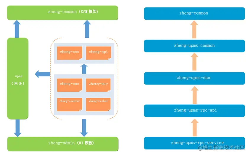 | ├── zheng-upms-rpc-api -- rpc接口包