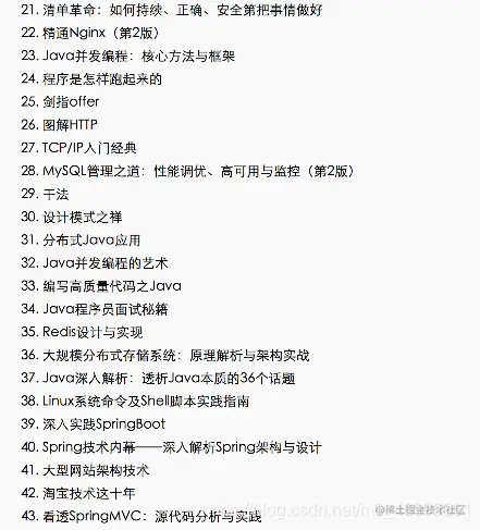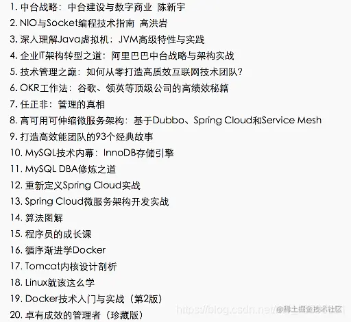 回头我给你整理一份我之前看过的书单,还有一些技术资料,面试题、视频都有一些。(文末我会提供这些书单和资料截图)必读书籍有:《深入理解Java虚拟机:JVM高级特性与实践》、《阿里巴巴Java开发手册》、《企业IT架构转型之道:阿里巴巴中台战略与架构实战》、《Java并发编程的艺术》、《编写高质量代码之Java》等等。