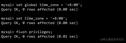 set global time_zone = '+8:00'; # 修改MySQL全局时区为北京时间,即我们所在的东8区