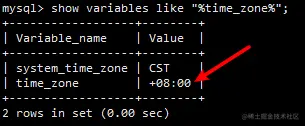 再次查看时区,发现 time_zone 已经修改了:
