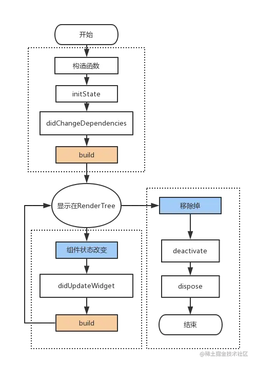 - dispose(): 当state对象从树中被永久移除时调用,一般在此方法中释放资源