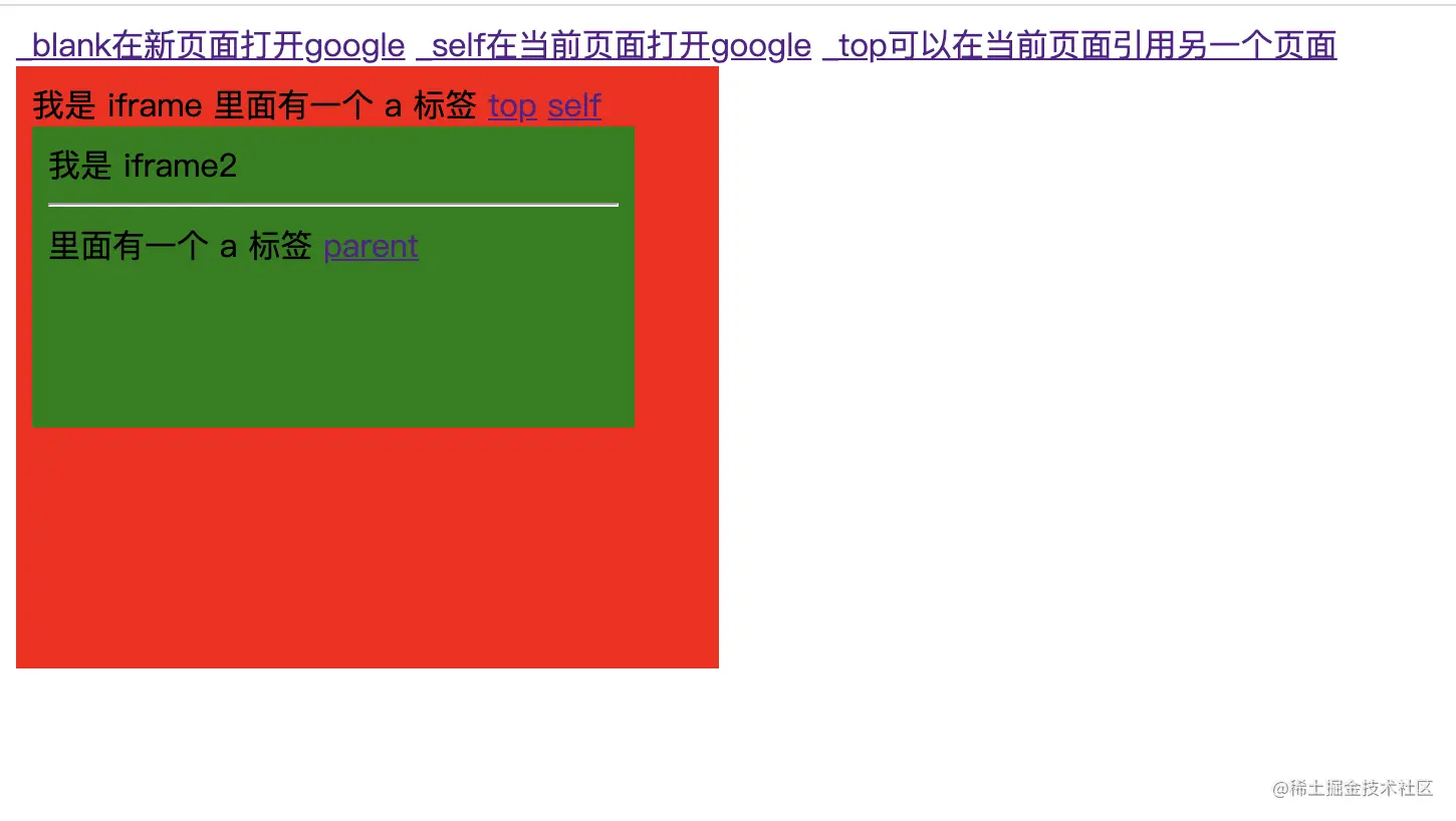 <a href="//google.com" target="_top">_top可以在当前页面引用另一个页面</a>