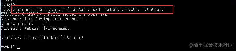 insert into lyz_user (userName, pwd) values ('lyz6'666666');