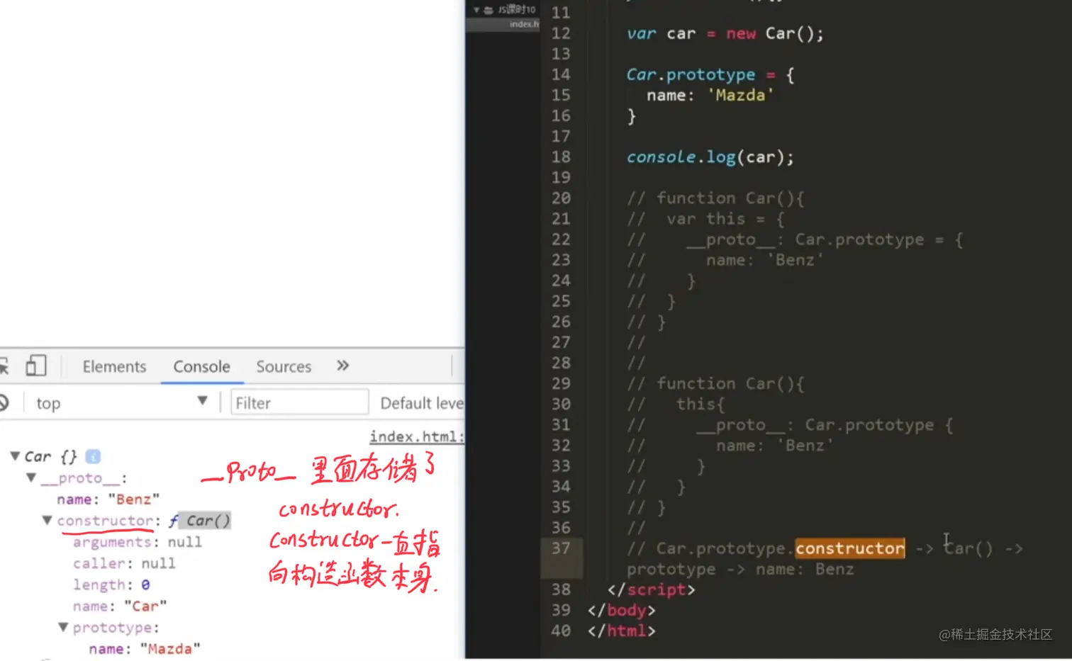 因为构造函数变化了,所以此时constructor也会变化,里面保存的name为Mazda
